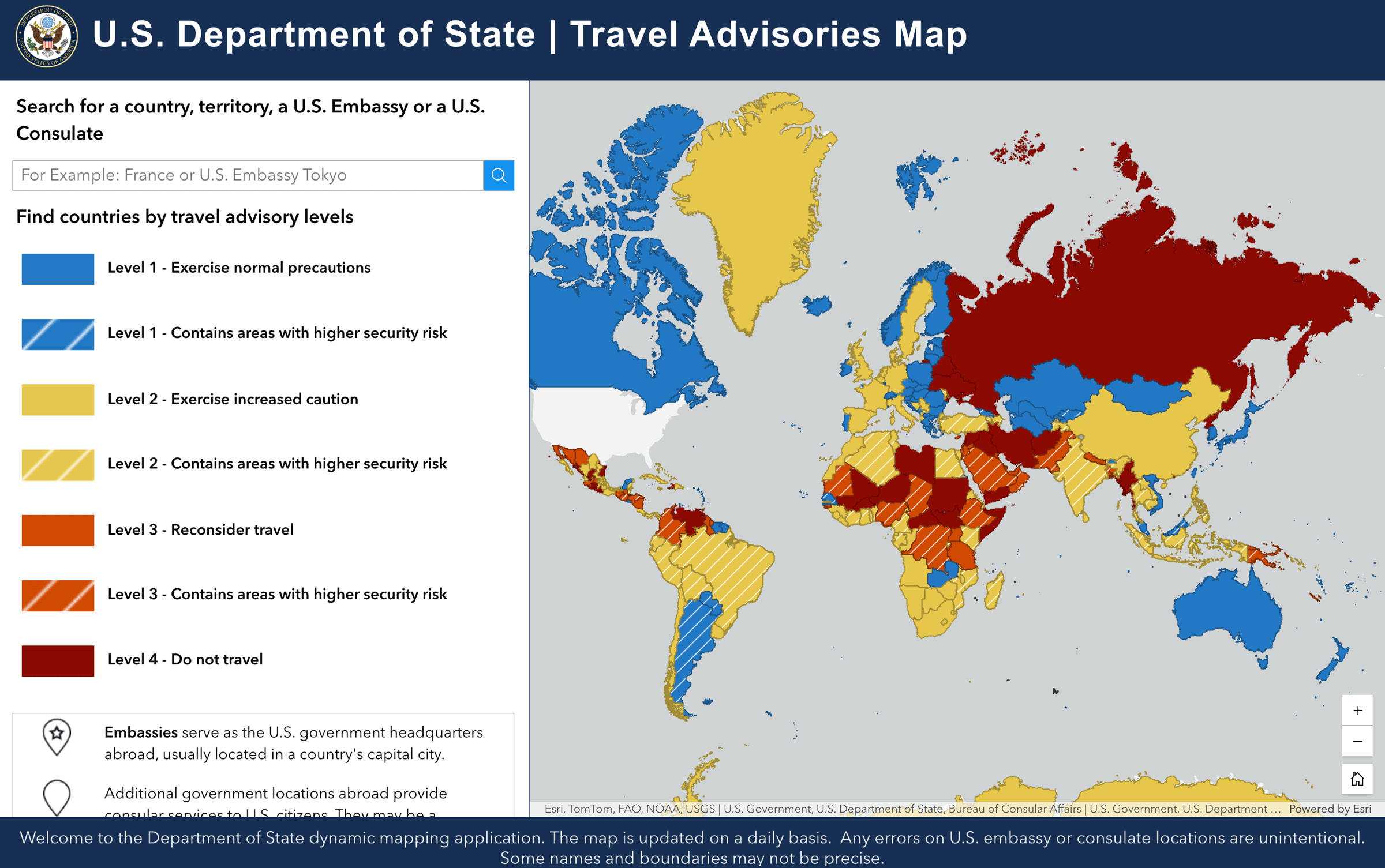 - Check your country's travel advisory for the country you are in.
