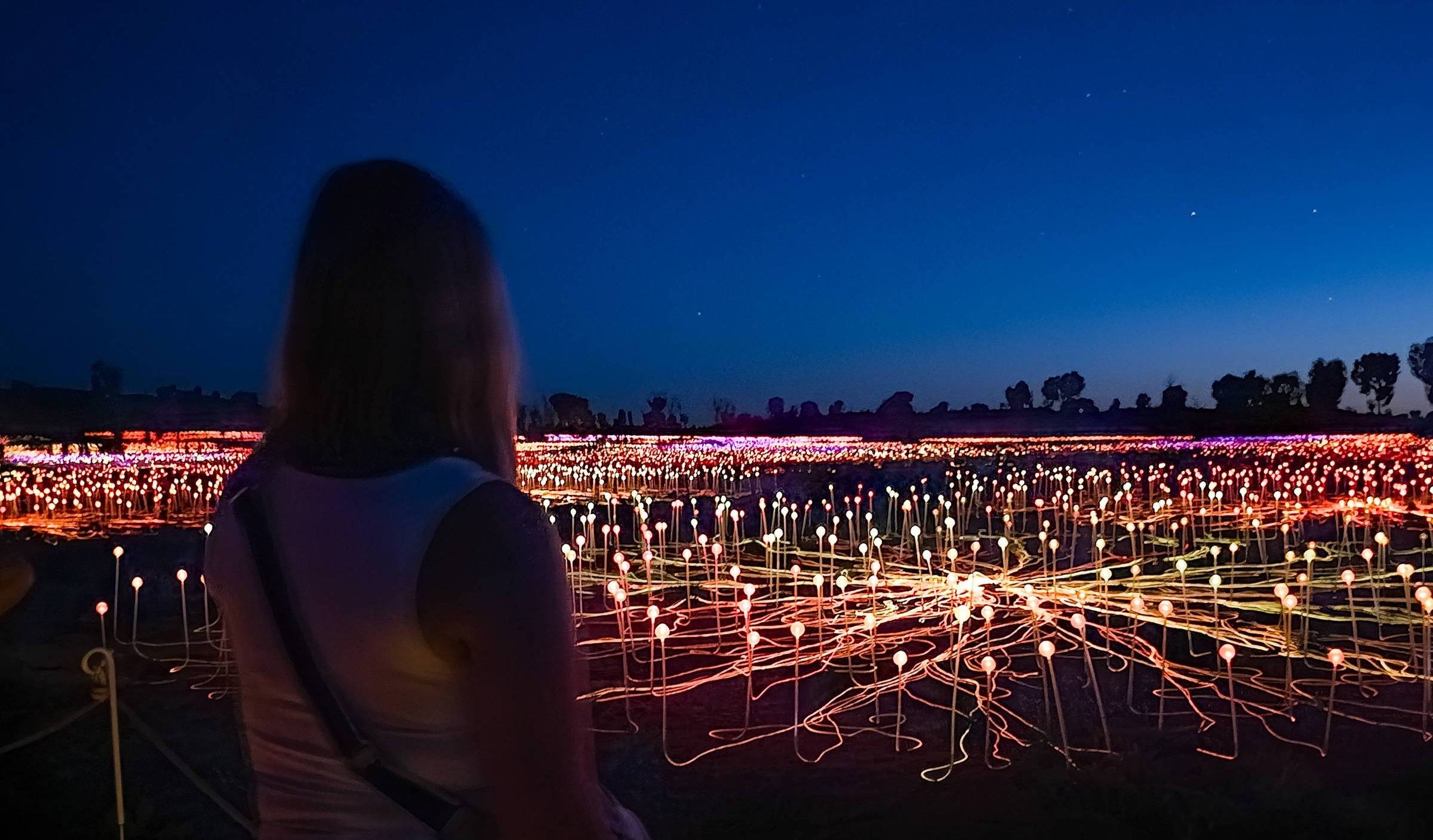 - Uluru, in Australia's center, is exploding with cultural expression, most of it we experience during our trip. We enjoy fabulous drinks with a high-tech drone show up in the sky, a unique sunset picnic that includes morsels decorated with green ants and incredible views of the Field of Lights installation (which has just been refurbished ahead of its 10th anniversary in 2026), a sunrise Uluru base walk getting up and close to this incredible monolith, and so much more.