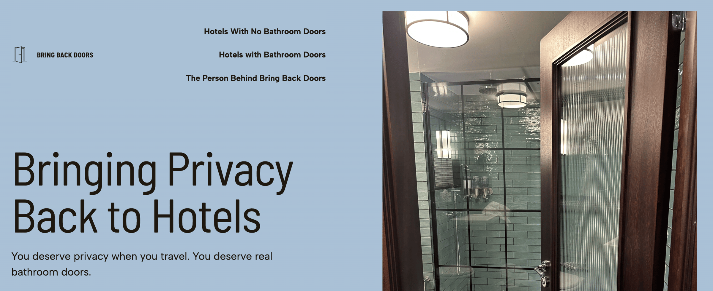 โBring bak doors started last year by Sadie, who was as outraged as me about hotel designs foregoing bathroom doors after a trip with her dad.